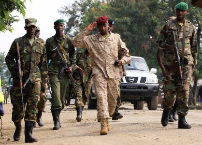 Colonel Innocent Kaina (C) of the Congolese M23 rebel group walks with his fighters in Kiwanja town August 4, 2013, as a deadline set by U.N. peacekeepers for rebels in the volatile eastern Democratic Republic of Congo to lay down their weapons passed on Thursday, with the fighters facing force if they fail to disarm. REUTERS/James Akena (DEMOCRATIC REPUBLIC OF CONGO - Tags: CIVIL UNREST POLITICS MILITARY)