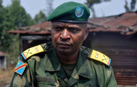 Congolese government army spokesman Colonel Olivier Hamuli talks to Reuters in Mutaho, outside Goma