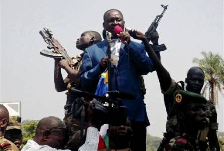 Fighters encamped within 75 km of capital accuse Bozize of reneging on a 2007 deal to provide money and jobs for former rebels; insurgent leaders split over whether to accept offer of new talks