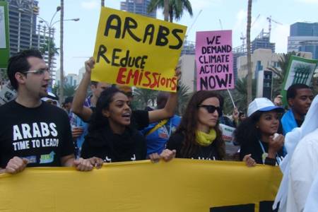 "Our main demand is to ask the Arab leaders to take the lead in climate change policies," says one youth at government-backed march