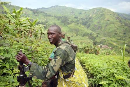 An M23 rebel fighter rests as he and other fighters withdraw near the town of Sake