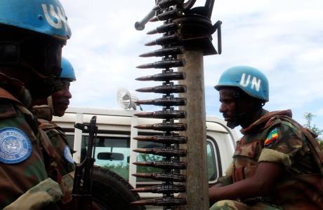 Ethiopian United Nations peacekeepers patrol the outskirts of the disputed Abyei town that straddles the border between Sudan and South Sudan September 16, 2013. REUTERS/Andreea Campeanu (SOUTH SUDAN - Tags: POLITICS CIVIL UNREST)