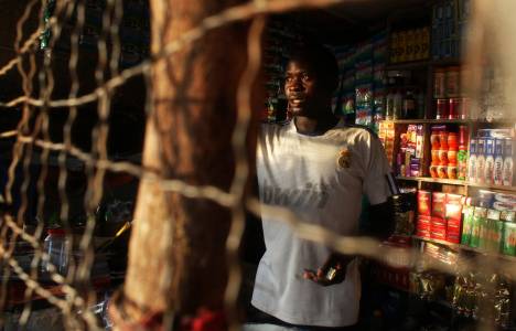 A Darfurian trader waits for customers in his shop in Abyei town