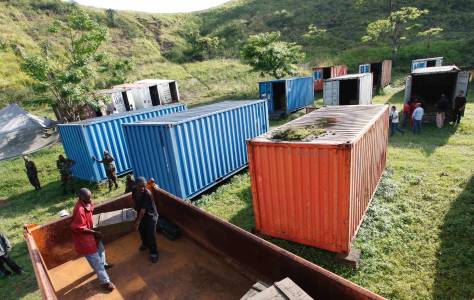 CRA members load ammunitions into a truck from containers storing the arms, which were abandoned by fleeing government army following the capture of Goma in the Democratic Republic of Congo