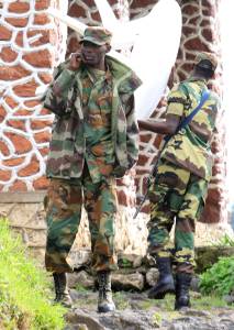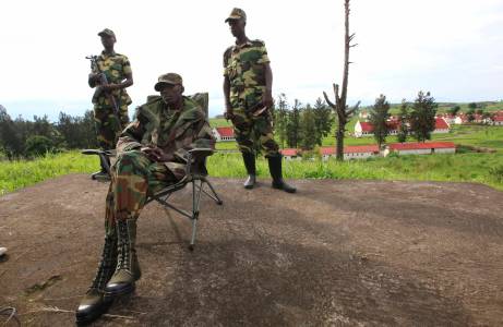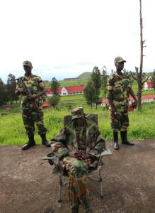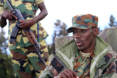 Brigadier General Sultani Makenga of the newly formed Congolese Revolutionary speaks on a phone in Rumangabo military camp
