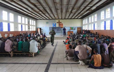 Recruits of the newly formed Congolese Revolutionary Army attend military training in a church in Rumangabo military camp