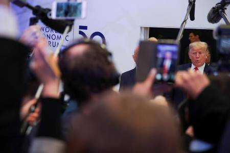 Trump touts U.S. economy, dismisses climate 'prophets of doom' as Greta looks on