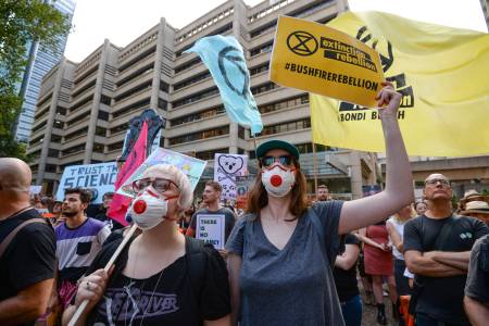 Australians protest over climate change policy as bushfires rage