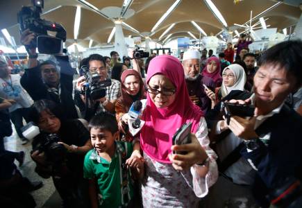 Malaysian family arrives to confirm the news that their relatives were on board the Malaysian Airlines MH17 at the Kuala Lumpur International Airport in Sepang