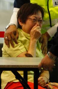 Malaysian Dina weeps after seeing her daughter's name on the list of passengers on board Malaysia Airlines MH17 at Kuala Lumpur International Airport in Sepang