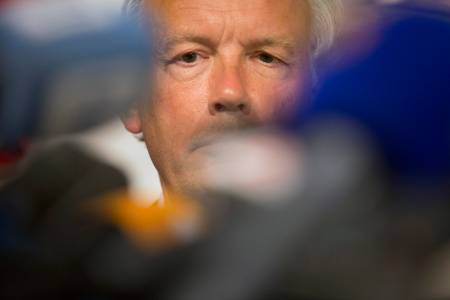 Schiphol Chief Executive Jos Nijhuis attends a news conference at Schiphol Airport July 17, 2014. Most of the 283 passengers aboard the Malaysia Airlines jet that crashed over eastern Ukraine on Thursday were Dutch, the airline's European chief Huib Gorter (not pictured) said. There were a further 47 passengers whose nationality was not yet known. All the 15 flight crew were Malaysian. REUTERS/Cris Toala Olivares (NETHERLANDS - Tags: TRANSPORT DISASTER CONFLICT)