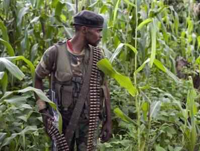 A Congolese government soldier holds a gun near Rutshuru in the east of the Democratic Republic of Congo