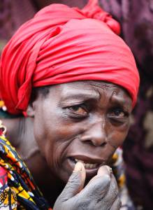 A refugee from the Democratic Republic of Congo reacts to camera as she arrives at the Nyakabande refugee transit camp in Kisoro