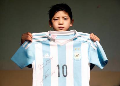 Murtaza Ahmadi grabbed world headlines when his brother made him a shirt out of a plastic bag, featuring Messi's name and number 10 playing number