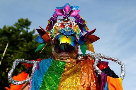 Many wore rainbow face masks at the parade, usually one of the world's largest LGBT pride events