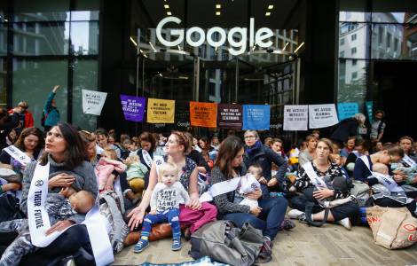 The mothers say they launched their protest in response to a report that said Google has made "substantial" contributions to climate deniers