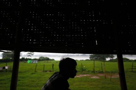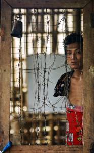 Aung looks out from inside a bamboo cell called the "Special Prayer Room", where he is locked in for his first week at the Youth for Christ Centre for heroin addicts, near Naung Chein