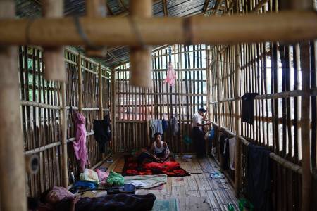 Residents pass the time in a bamboo cell called the "Special Prayer Room", where they are locked in for their first week at the Youth for Christ Centre for heroin addicts, near Naung Chein