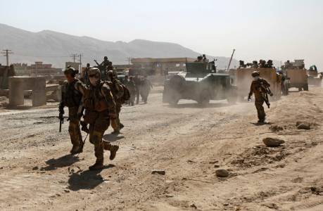 Members of the NATO-led International Security Assistance Force arrive at the site of an attack in Kabul
