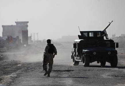 A member of the Afghan security forces walks towards the site of an attack in Kabul