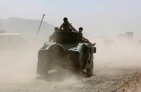 Afghan security forces arrive at the site of an attack in Kabul