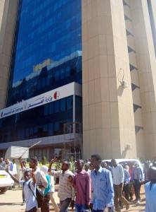 Students demonstrate outside the Ministry of Justice, over the deaths of four students from war-torn western region of Darfur in Gezira state, at Khartoum