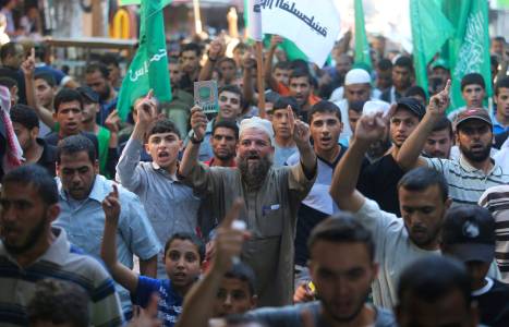 Palestinians take part in a rally in support of the armed Palestinian factions, in Khan Younis in the southern Gaza Strip August 12, 2014. Talks to end a month-long war between Israel and Gaza militants are "difficult", Palestinian delegates said on Tuesday, while an Israeli official said no progress had been made so far.As a 72-hour ceasefire held for a second day, Palestinian negotiators. REUTERS/Ibraheem Abu Mustafa (GAZA - Tags: POLITICS CIVIL UNREST)