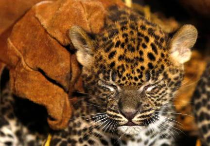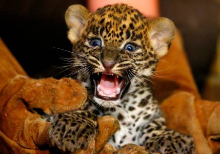An unnamed female Sri Lankan baby leopard is seen in a zoo in Maubeuge