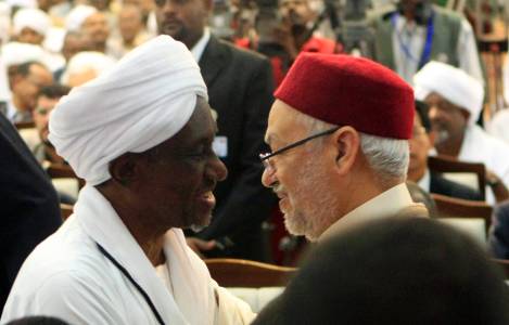 Sudan's First Vice President Taha talks to Tunisia Islamic Leader Ghannochi during 8th General Conference of Sudanese Islamic Movement in Khartoum