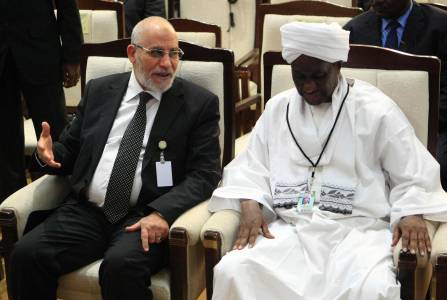 Sudan's First Vice President Taha talks to to Egypt Islamic Leader Badie during 8th General Conference of Sudanese Islamic Movement in Khartoum