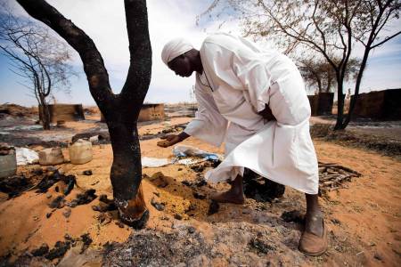 Sigit shows the destruction which occurred during a November 2 attack by armed forces on the village to UNAMID staff members in Sigili
