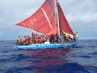 The U.S. Coast Guard intercepted 102 Haitian migrants crowded on a rickety sailboat