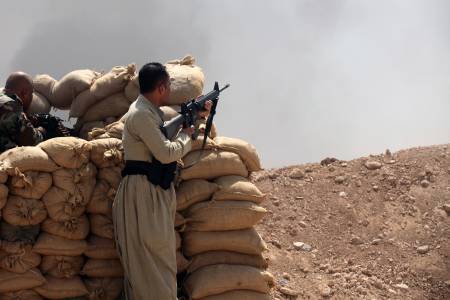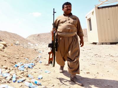 Kurdish "peshmerga" troops stand guard during an intensive security deployment against Islamic State militants, on the outskirts of the province of Nineveh, August 6, 2014. Islamic State militants extended their gains in northern Iraq on Thursday, seizing three more towns and gaining a foothold near the Kurdish region, witnesses said. The advance came after the Sunni militants inflicted a humiliating defeat on Kurdish forces in a weekend sweep in the north. The Islamic State, which has declared a caliphate in parts of Iraq and Syria it controls, clashed with Kurdish forces on Wednesday in the town of Makhmur near Arbil, the capital of the Kurdish semi-autonomous zone. Picture taken August 6, 2014. REUTERS/Stringer (IRAQ - Tags: CIVIL UNREST POLITICS CONFLICT MILITARY)