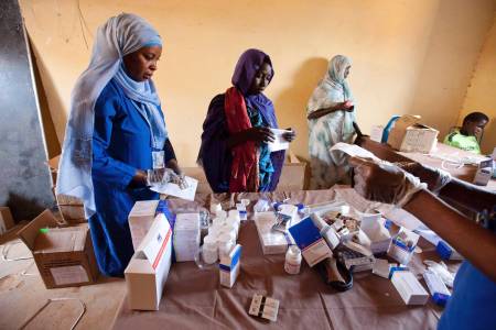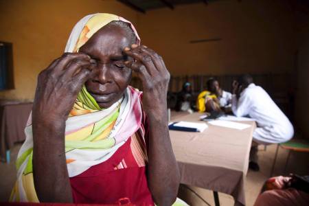 A woman receives medication in Kassab camp for Internally Displaced Persons (IDP), in Kutum