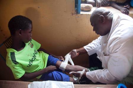 A boy is examined by doctors in Kassab camp for Internally Displaced Persons (IDP), in Kutum, North Darfur