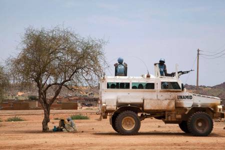 UNAMID peacekeepers from South Africa escort a humanitarian operation to Kassab camp for Internally Displaced Persons (IDP), in Kutum