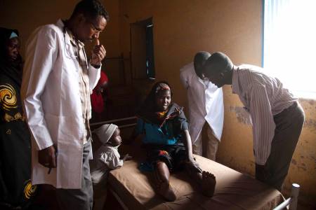 A woman is examined by doctors in Kassab camp for Internally Displaced Persons (IDP), in Kutum, North Darfur