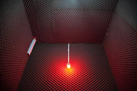 An "On Air" red light is seen inside the Bakhita Radio station in Juba