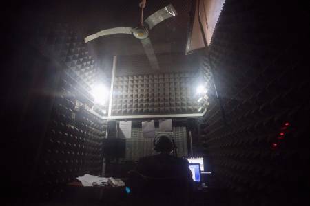 Sound equipment is seen inside Bakhita Radio station in Juba