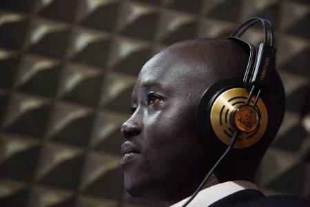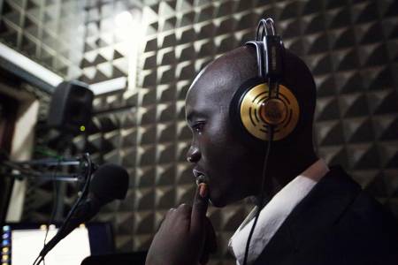 Mading Ngor broadcasts his morning radio program "Wake up Juba" from the studio of Bakhita Radio in Juba