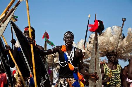Traditional dancers perform during celebrations to mark the first anniversary of the Republic of South Sudan's independence in the capital Juba