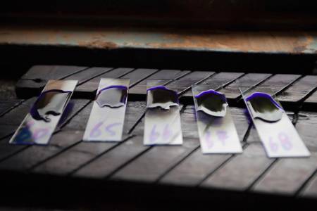 Blood samples to be tested for malaria are seen at the Aweil State Hospital in Aweil, the only hospital in the South Sudanese state of Northern Bahr el Ghazal