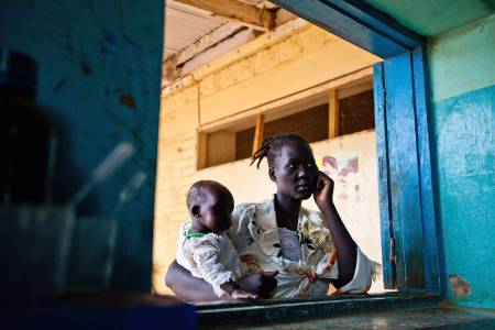 A woman and her child wait for test results at Aweil State Hospital in Aweil