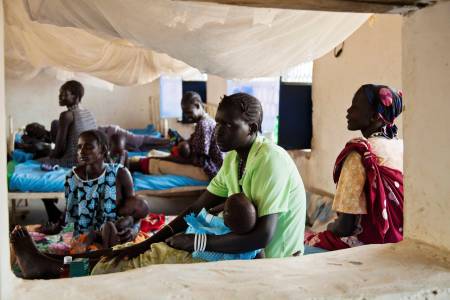 Women rest with their children at the inpatient ward of the Malualkon Primary Health Care Center in Malualkon