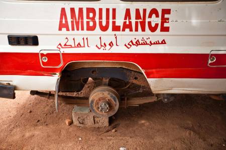 A detail of one of a few broken ambulances at the Aweil State Hospital, the only hospital in the South Sudanese state of Northern Bahr el Ghazal