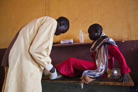 A girl is treated by a medic at the Aweil State Hospital in Aweil