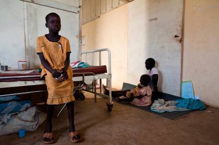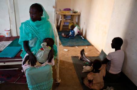 Women and children from Doro refugee camp wait at stabilization centre for malnourished children at Bunj Hospital in Bunj
