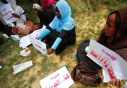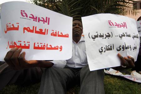 Journalists demonstrate against the closure of their newspaper Al-Jareeda in Khartoum