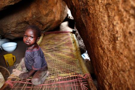A child cries in a cave shelter in Tess village in the rebel-held territory of the Nuba Mountains in South Kordofan